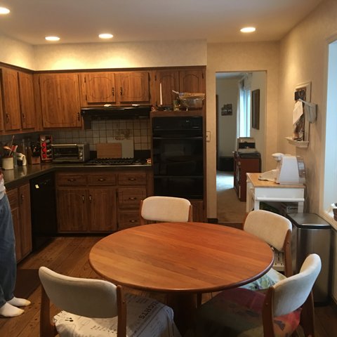 After. “We now have a very light, airy, kitchen with a peaked ceiling in the addition,” said the homeowners.